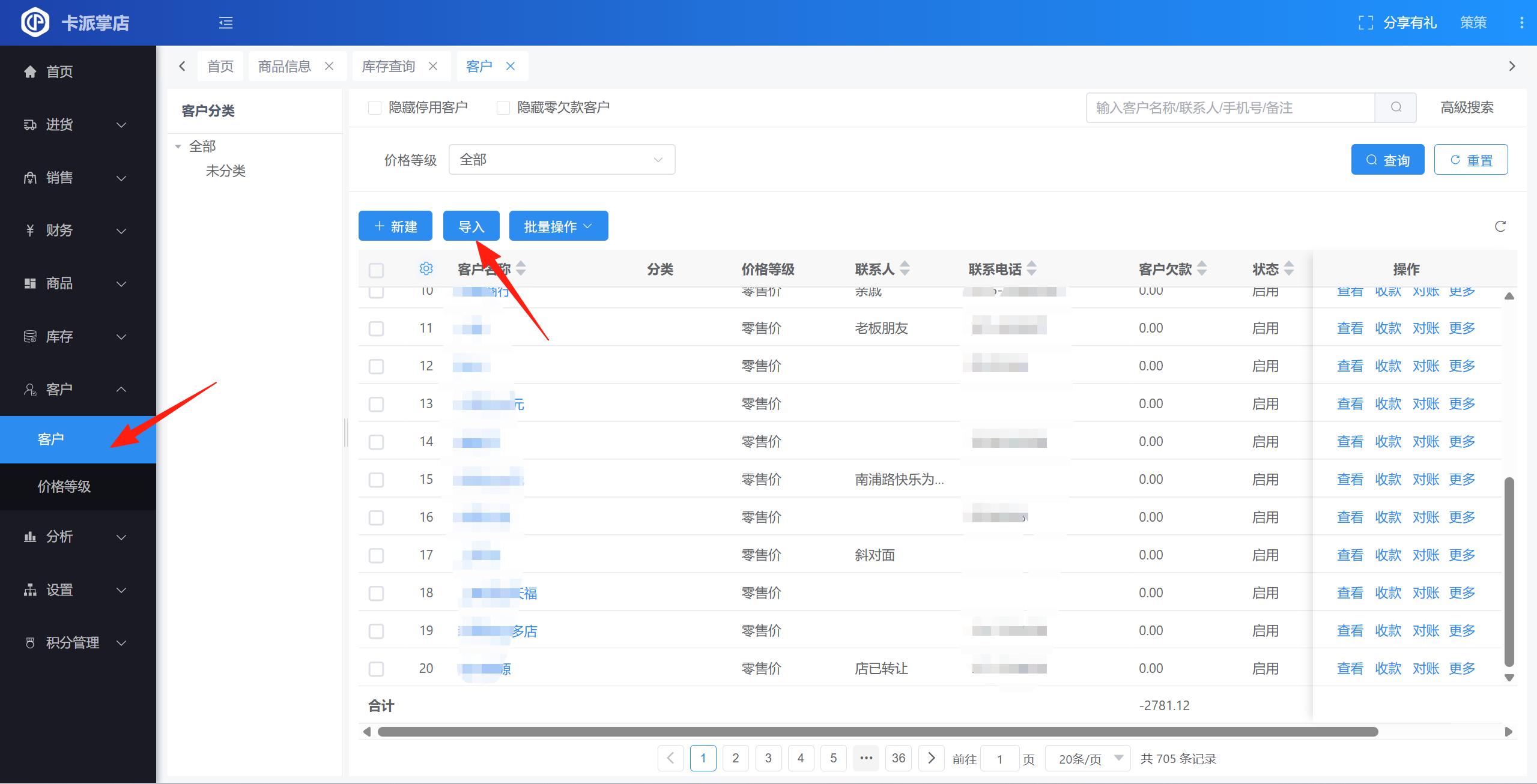▲ 检查导入的供应商或者客户数量及欠款是否正确
