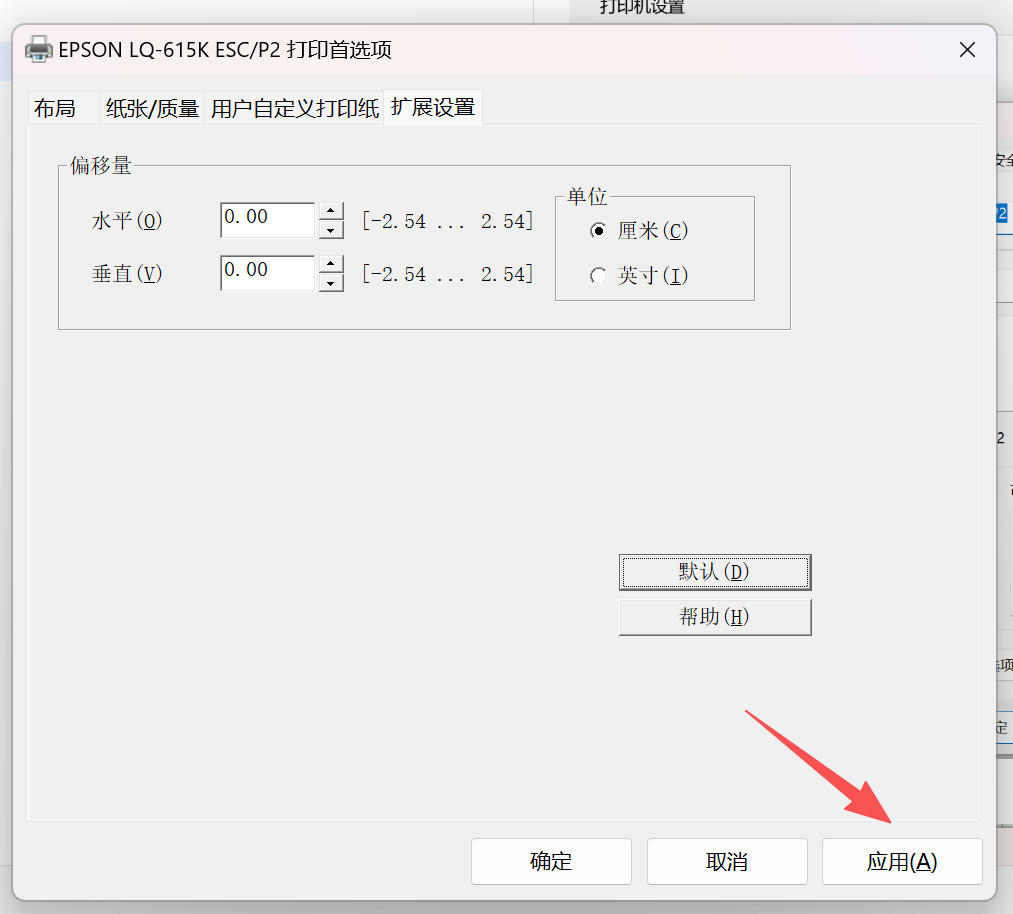 ▲ 配置完成后点击【应用】按钮,然后试打印一下看效果即可