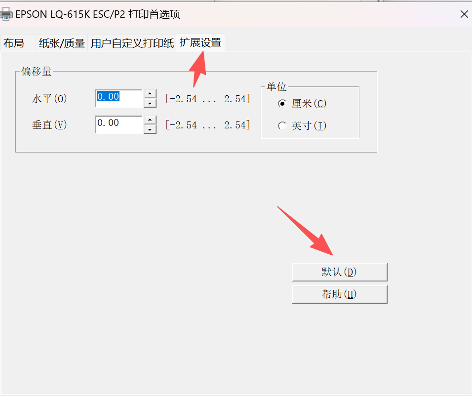 注:如果打印出来的位置太靠下或者打印不全,可以通过调整偏移量进行较正,例如左边空白太多,可以在水平输入框中输入-1(厘米),这样空白位就会相应减少