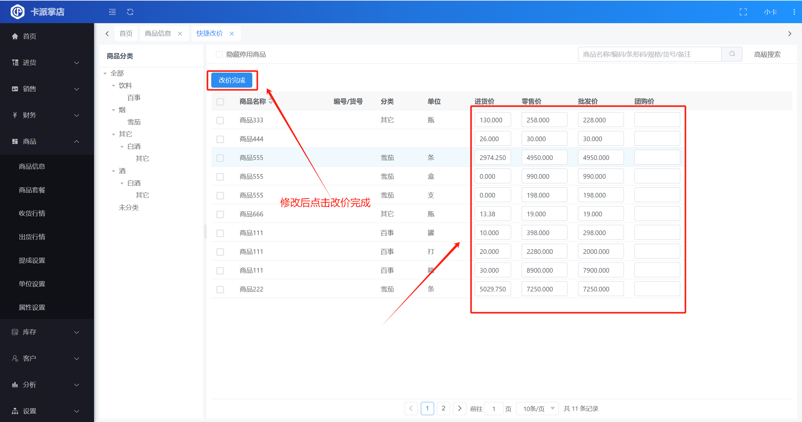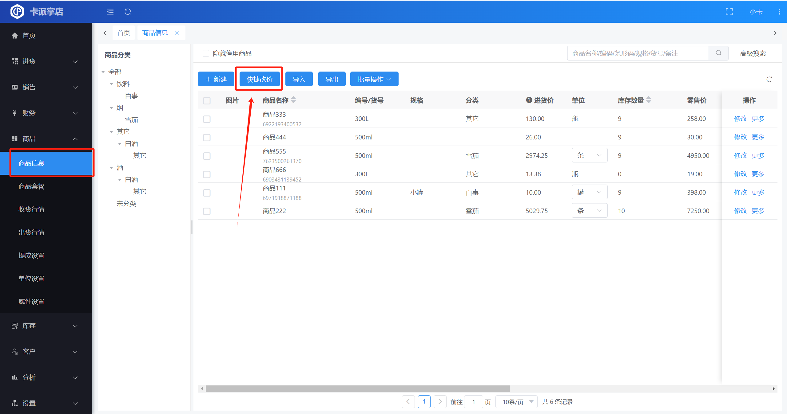 操作路径:【商品】-【商品信息】-【快捷改价】