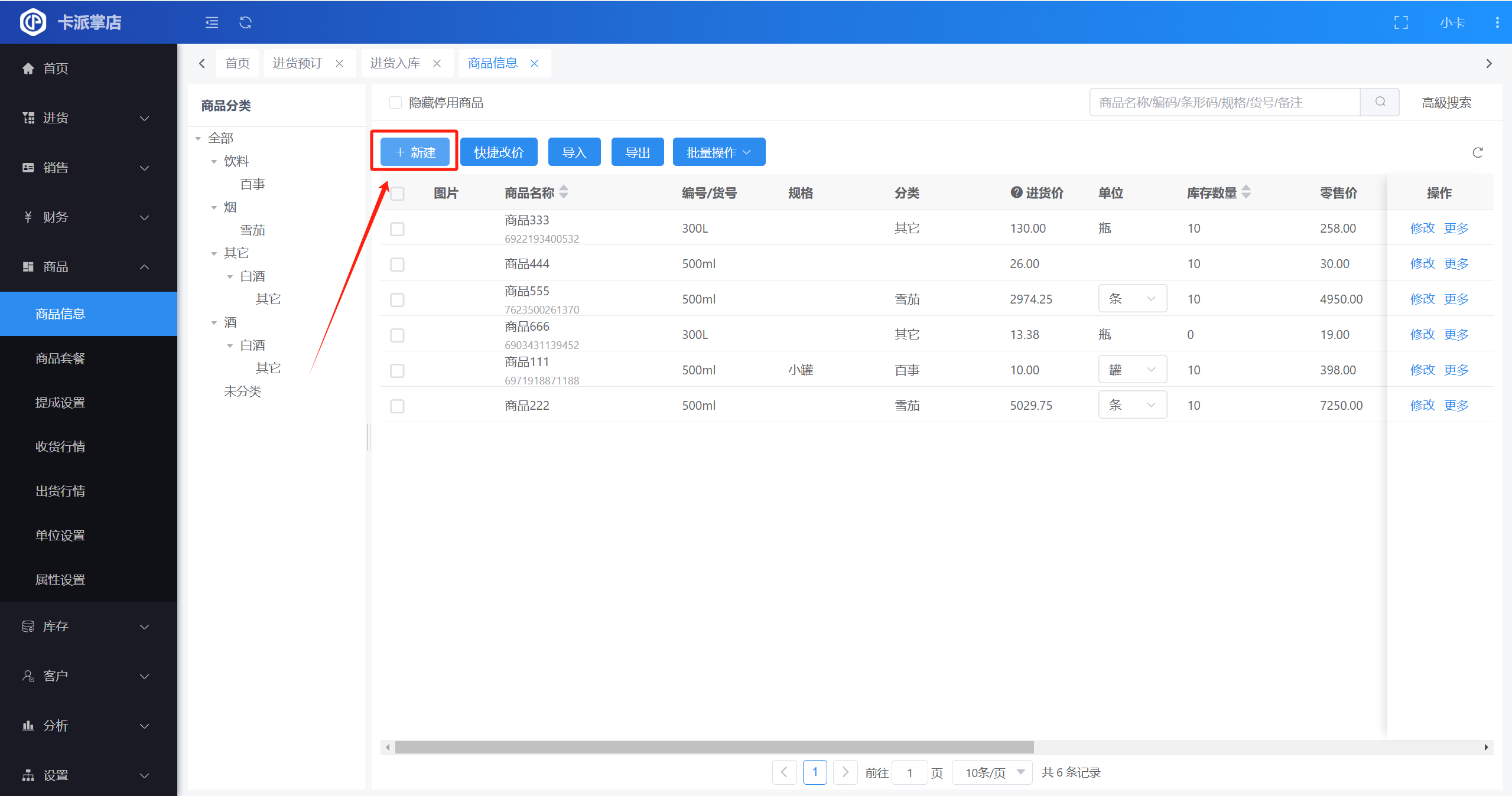 操作路径:【商品】-【商品信息】-【新建】