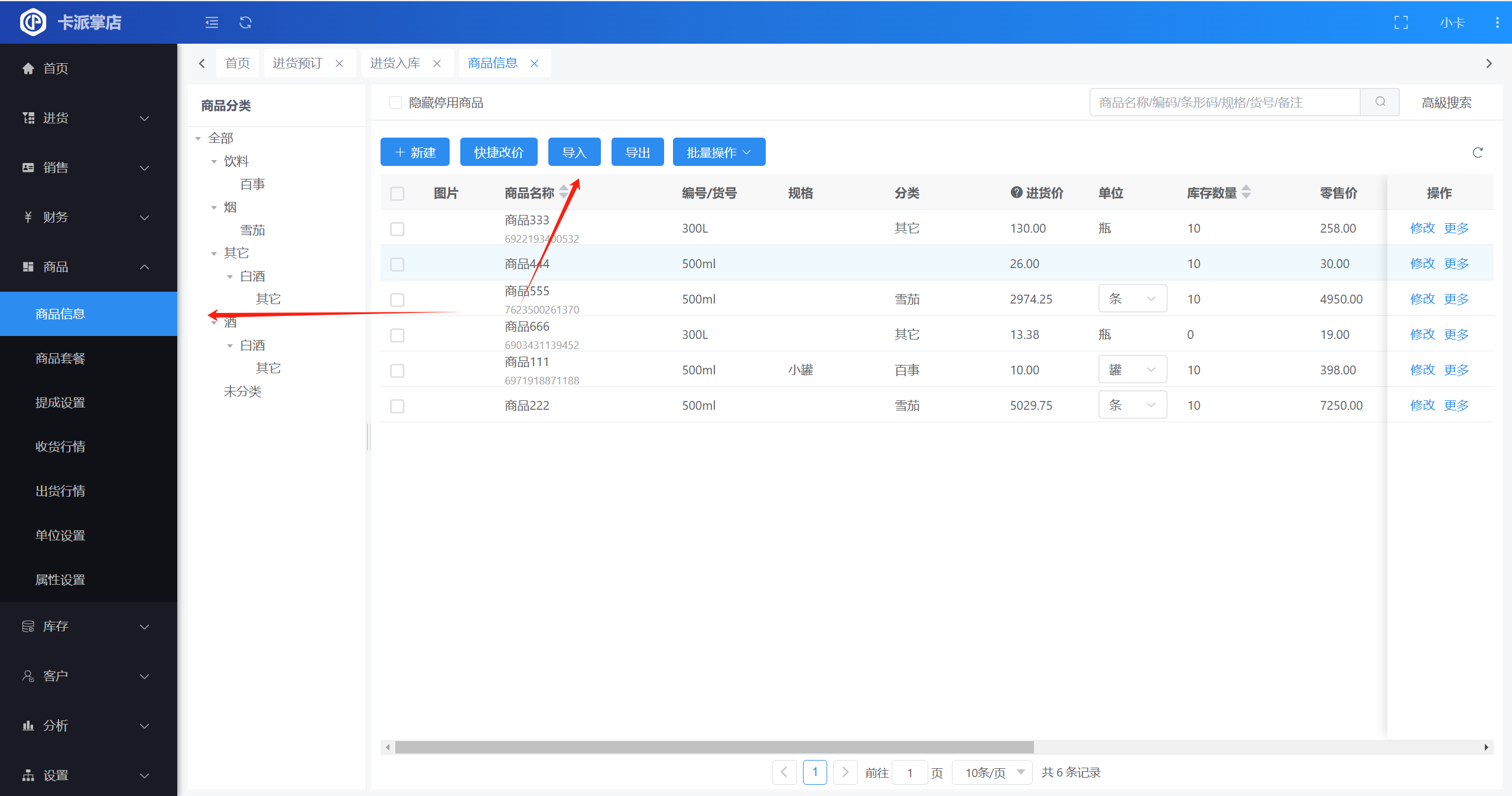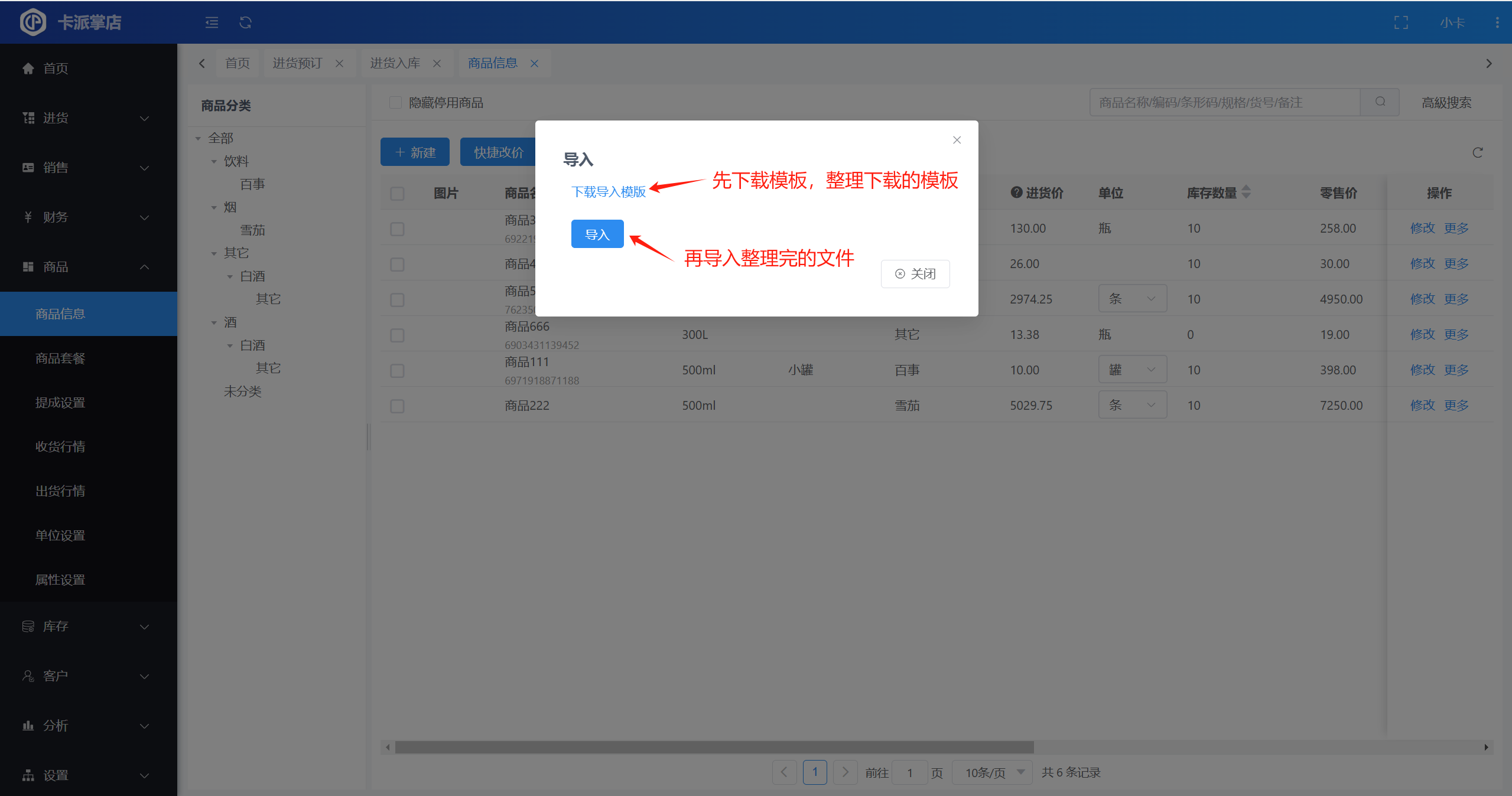 操作路径:【商品】-【商品信息】-【导入】