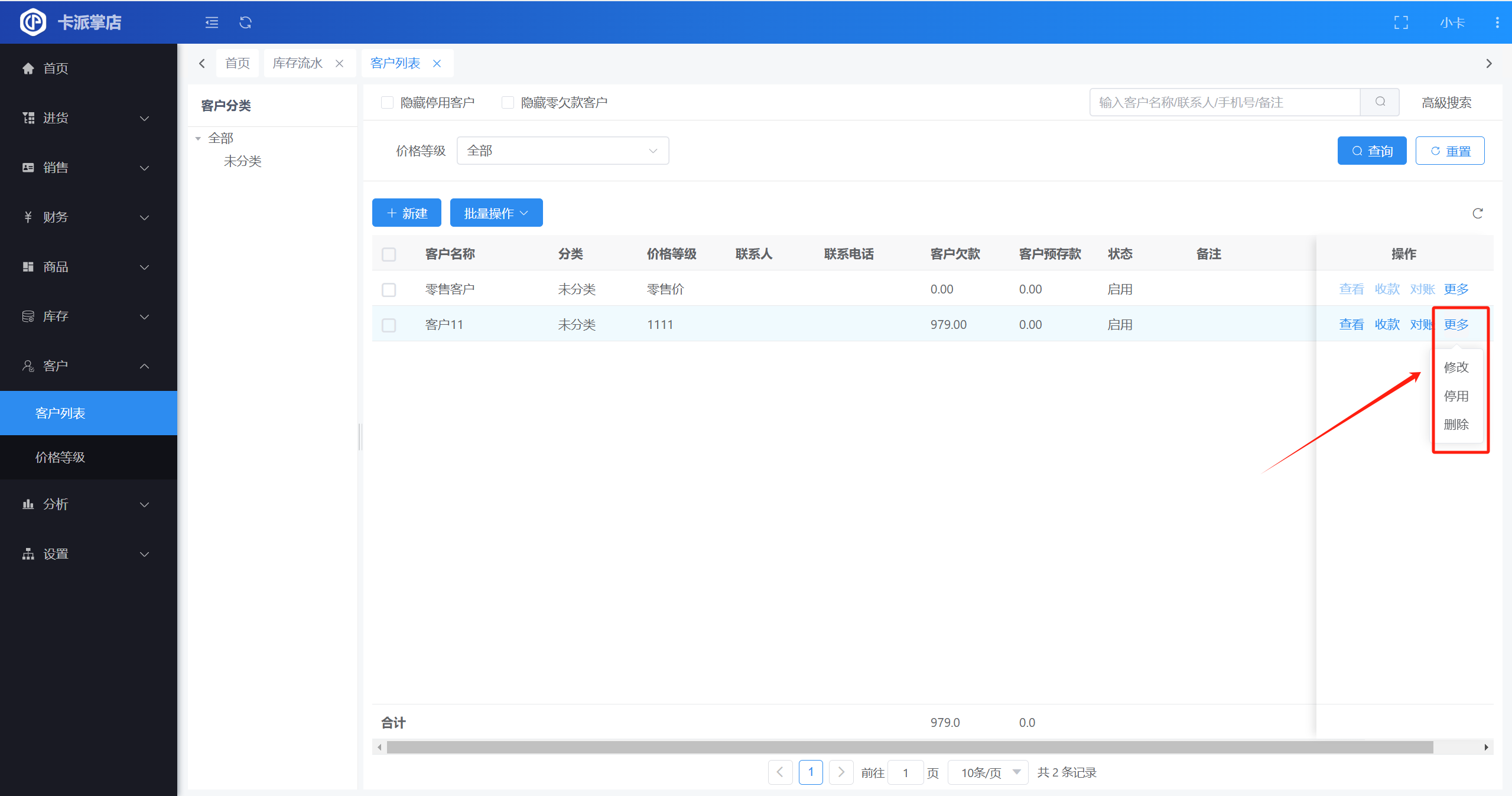 ▲ 点击【更多】按钮展开【修改】【删除】【启用】【停用】的操作