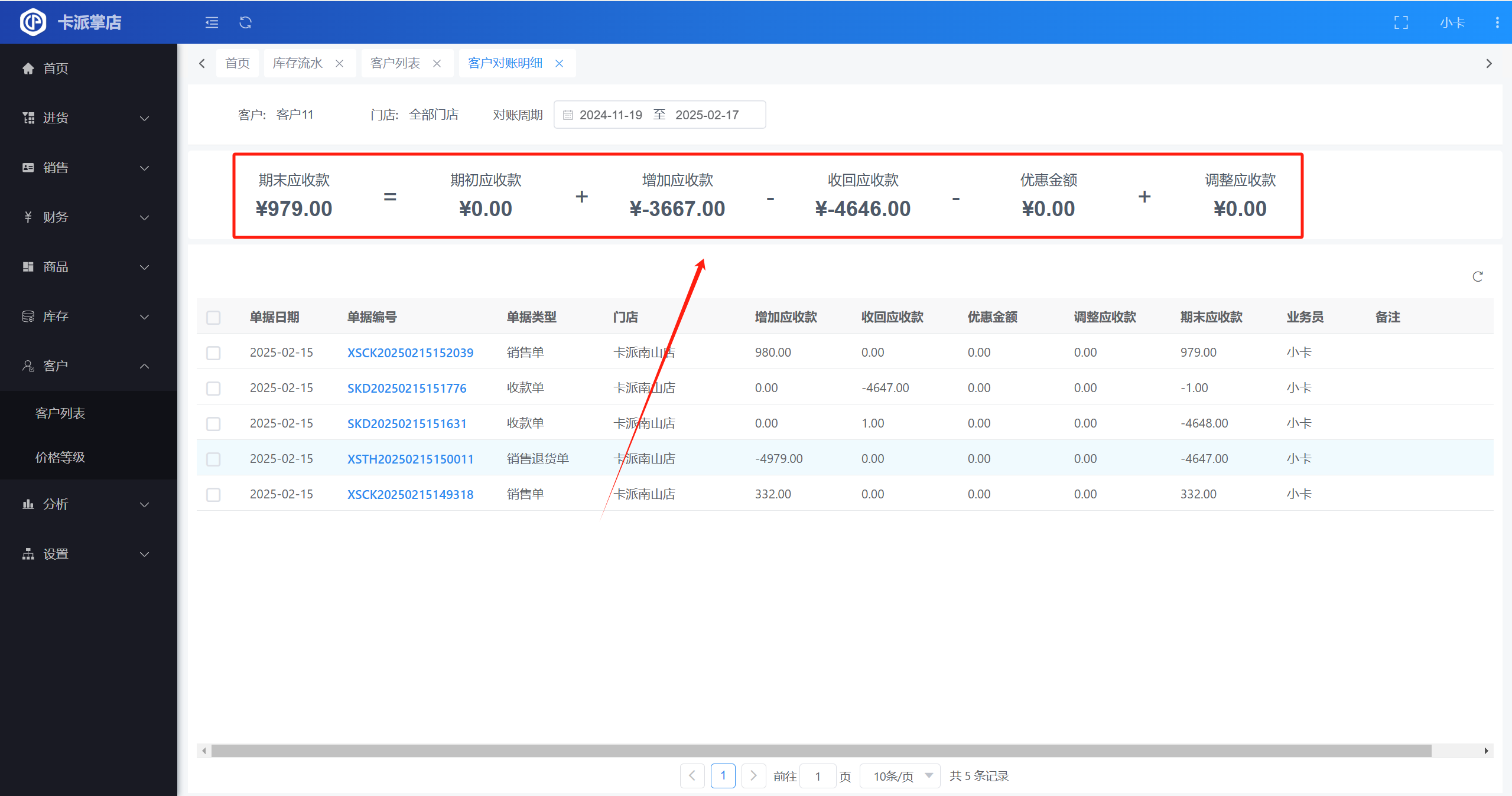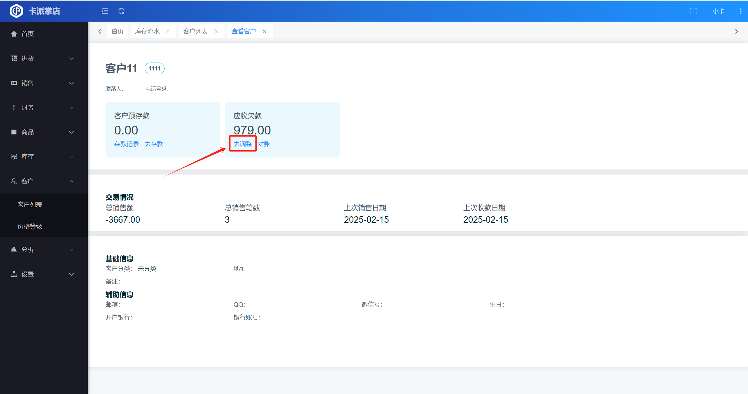 当发现客户的应收金额不正确时,可以手动调整客户应收款金额。