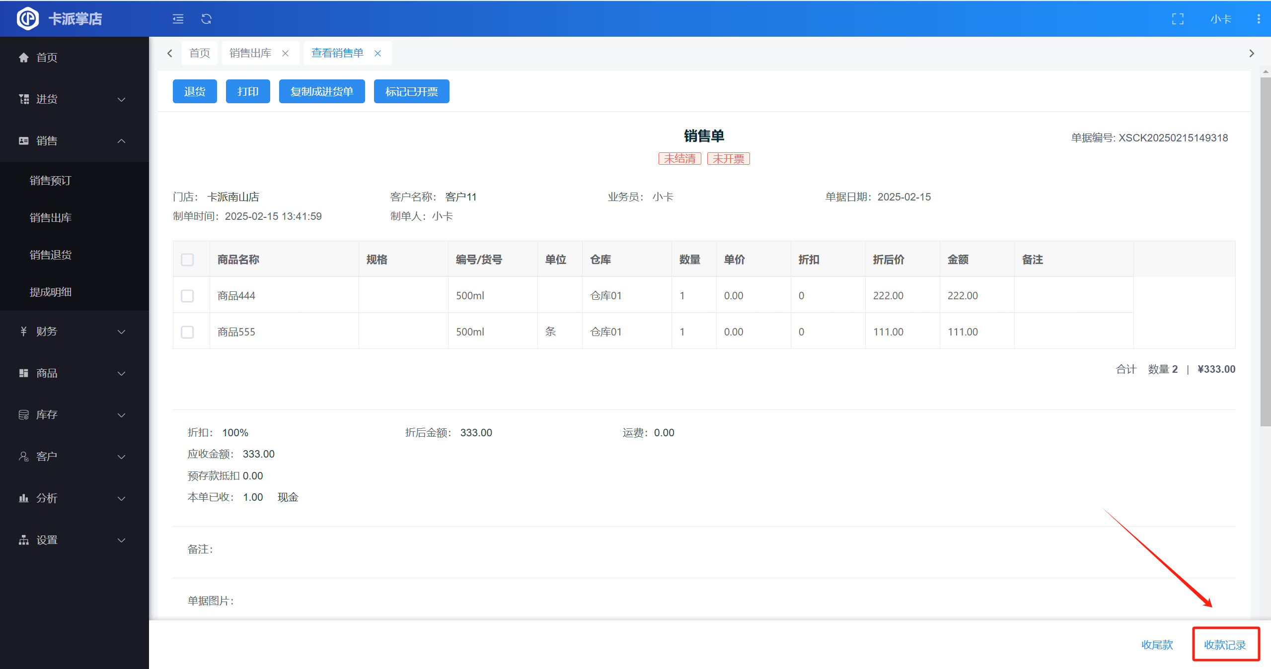如何查看销售出库单的收款记录