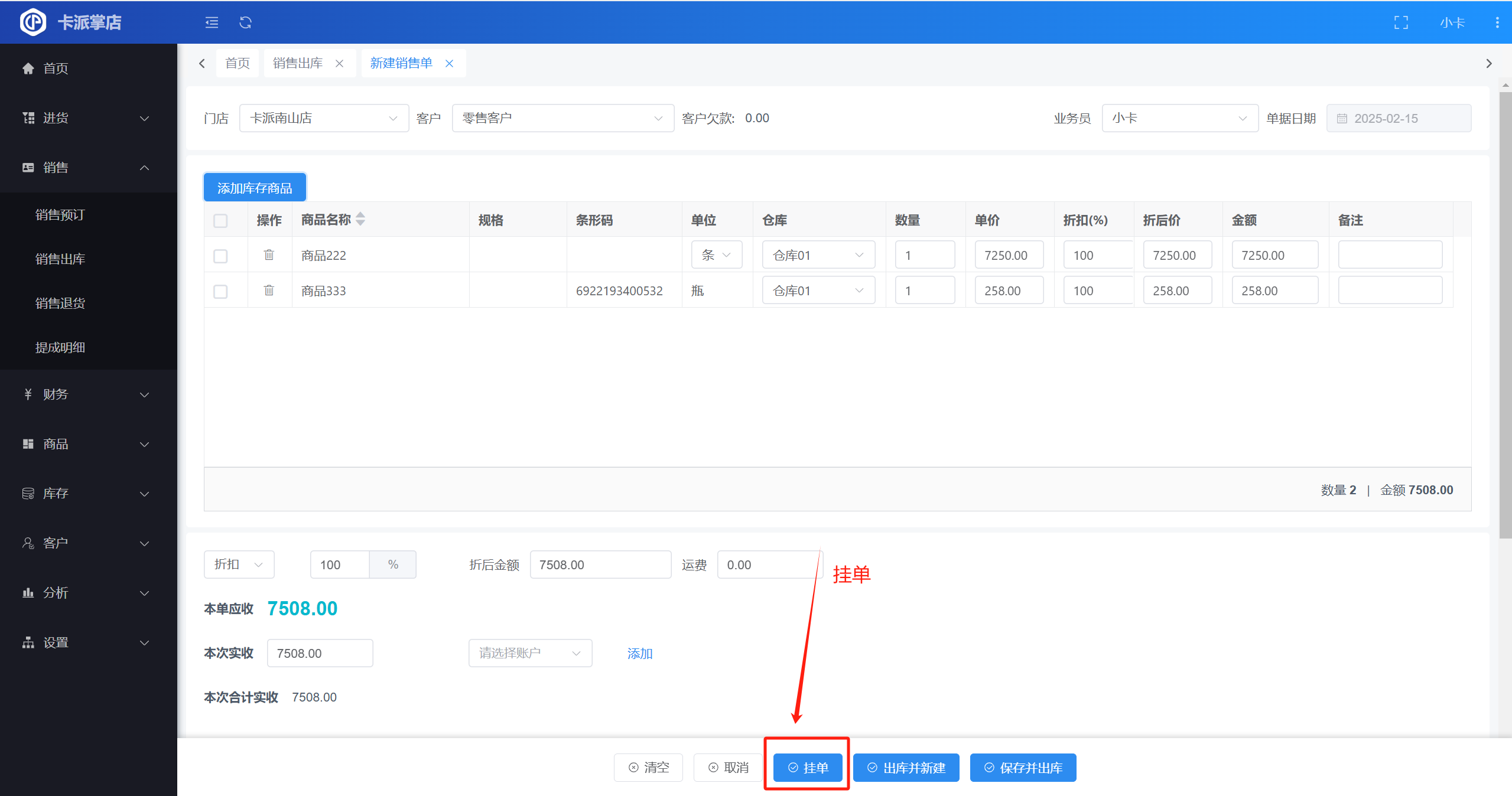 销售出库单如何挂单