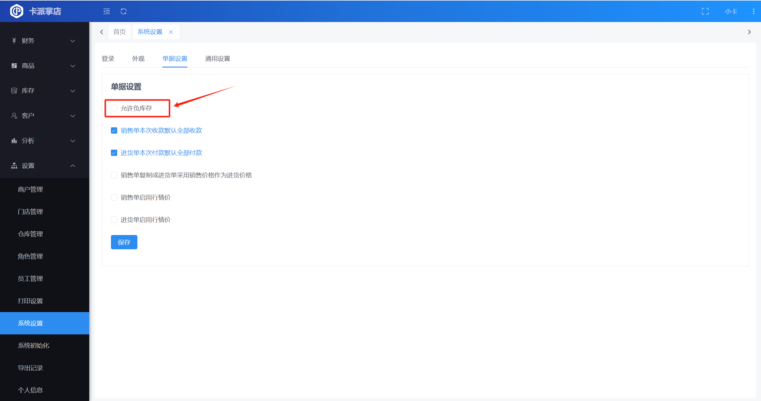 ▲ 未勾选“允许负库存”时,系统会强制不允许在商品无库存的情况下销售此商品,使仓库出现负数库存。