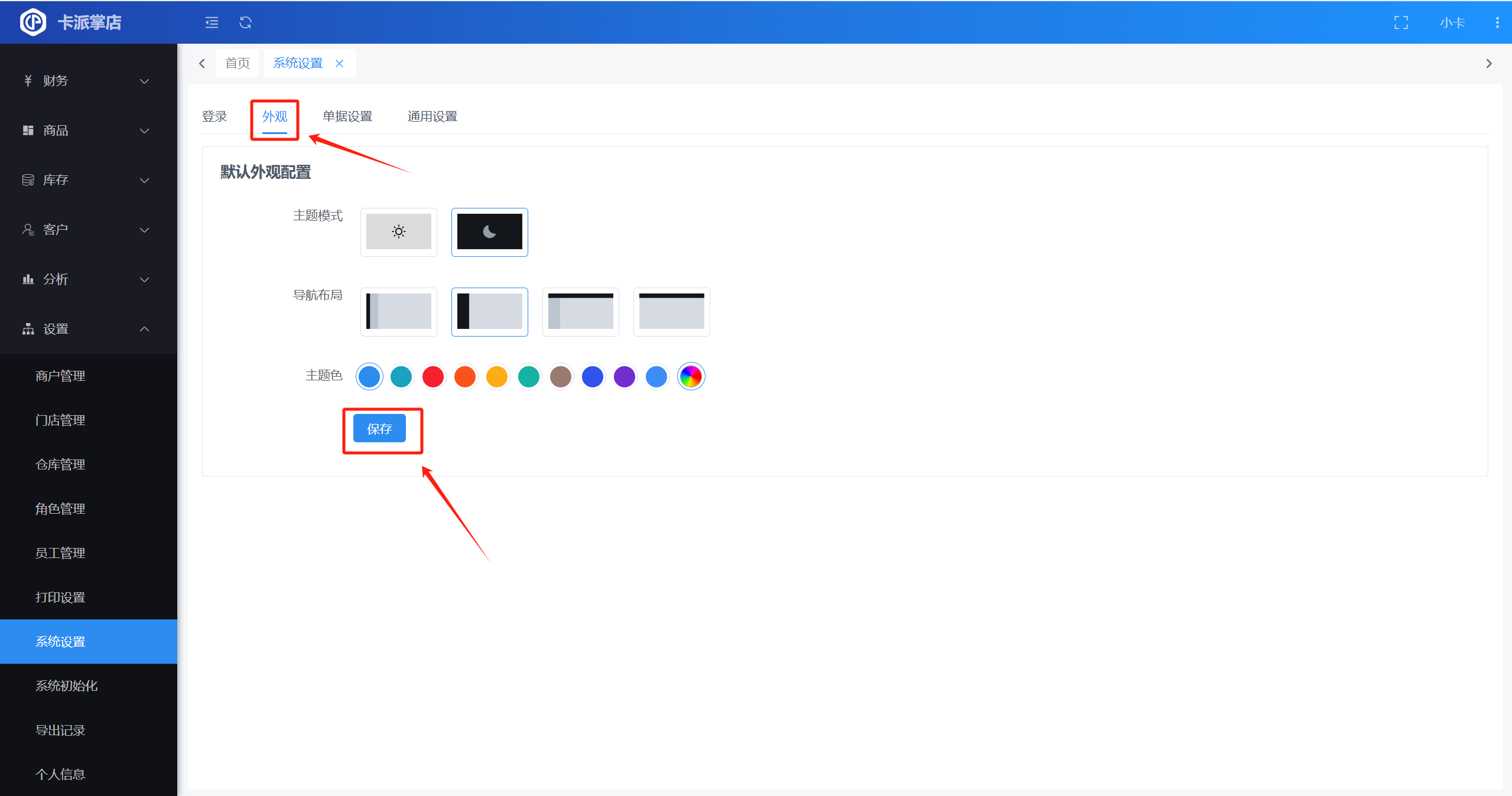 可以选择【主题模式】【导航布局】和【主题颜色】的相关配置