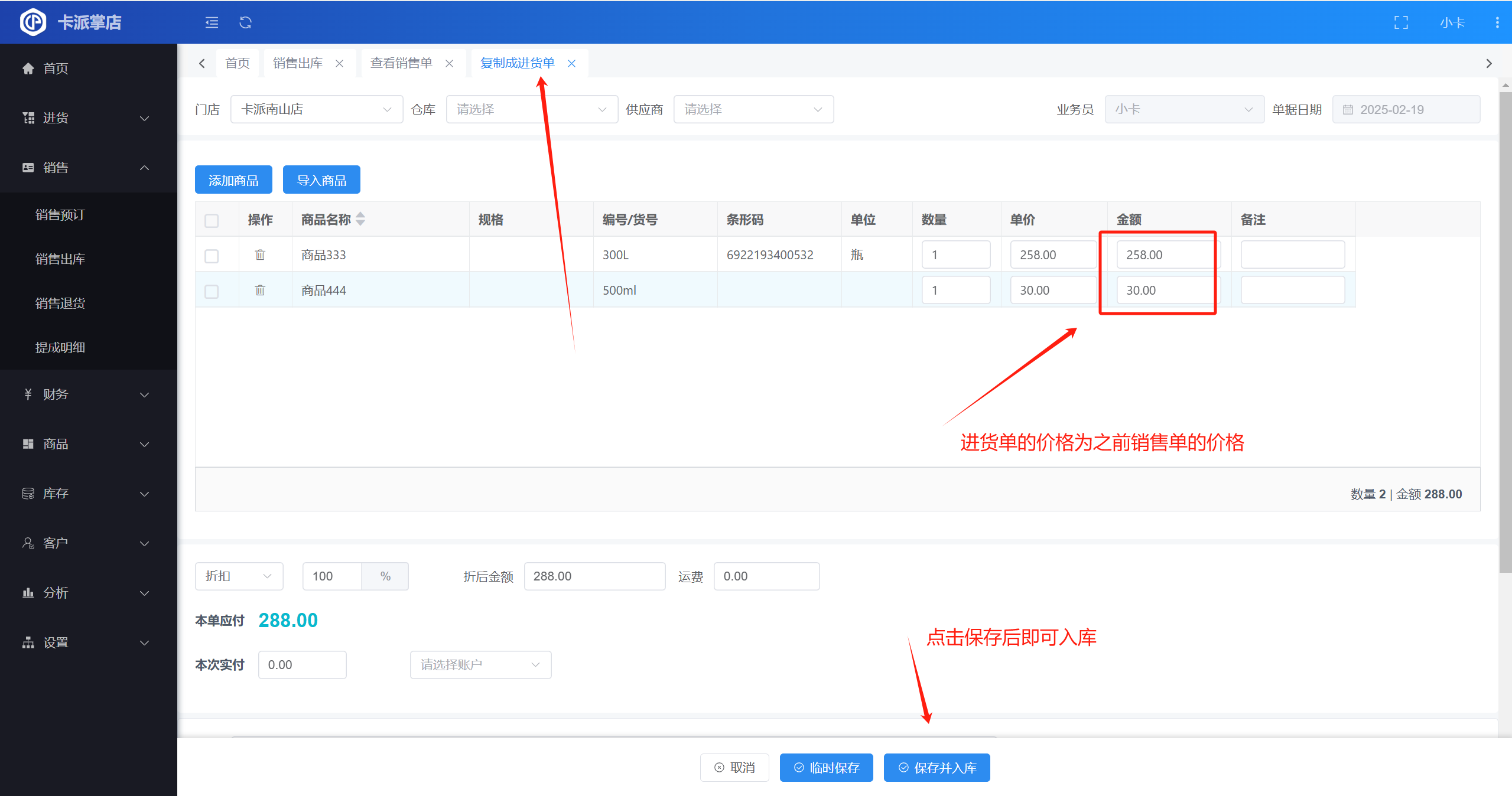 ▲ 进货单中的商品价格为销售单中商品的出库价格