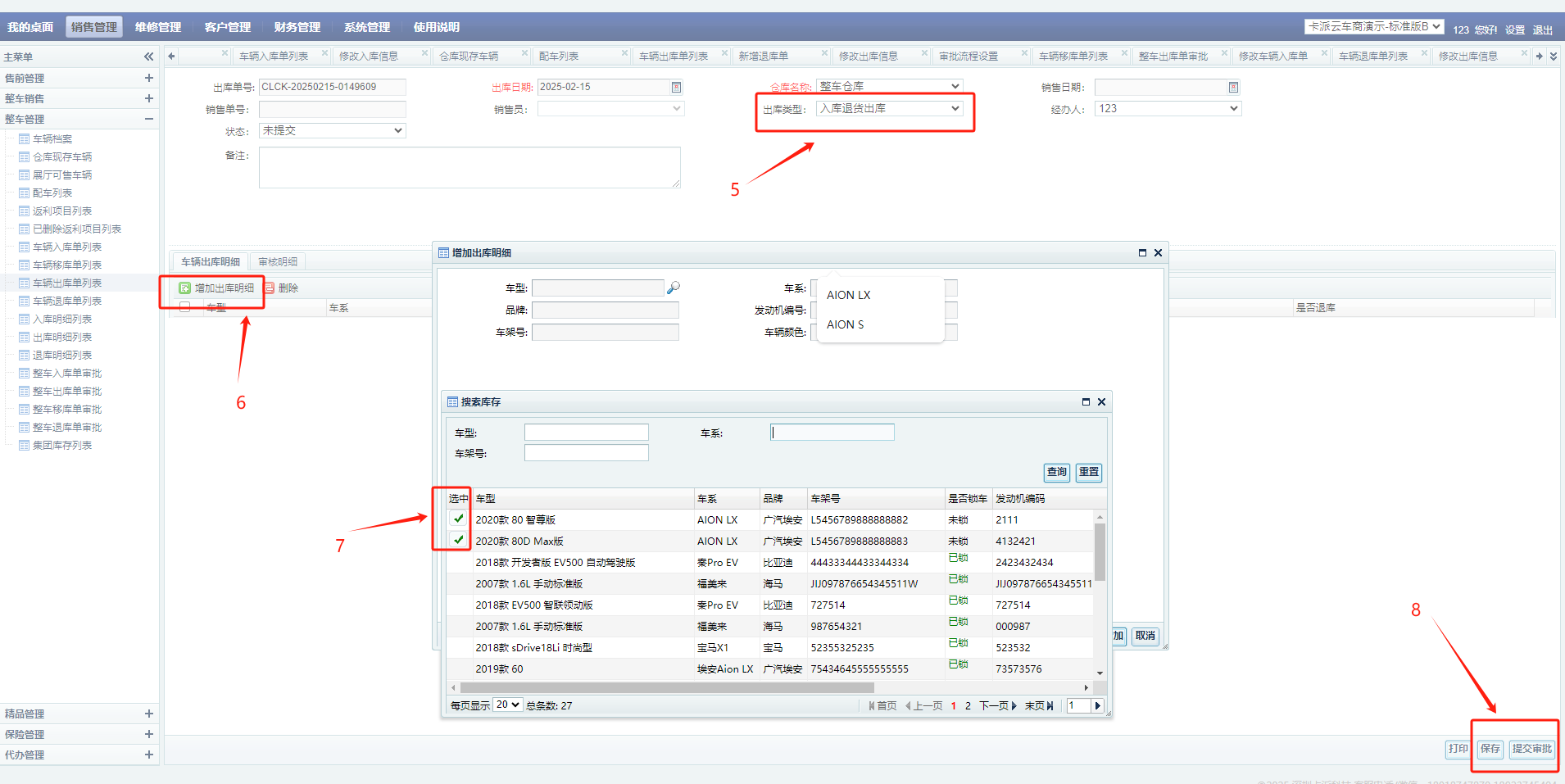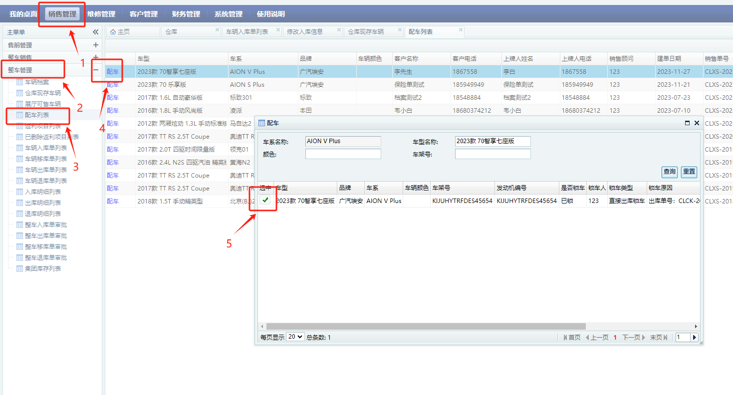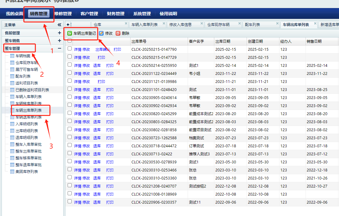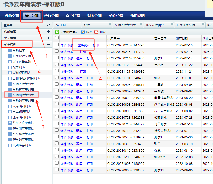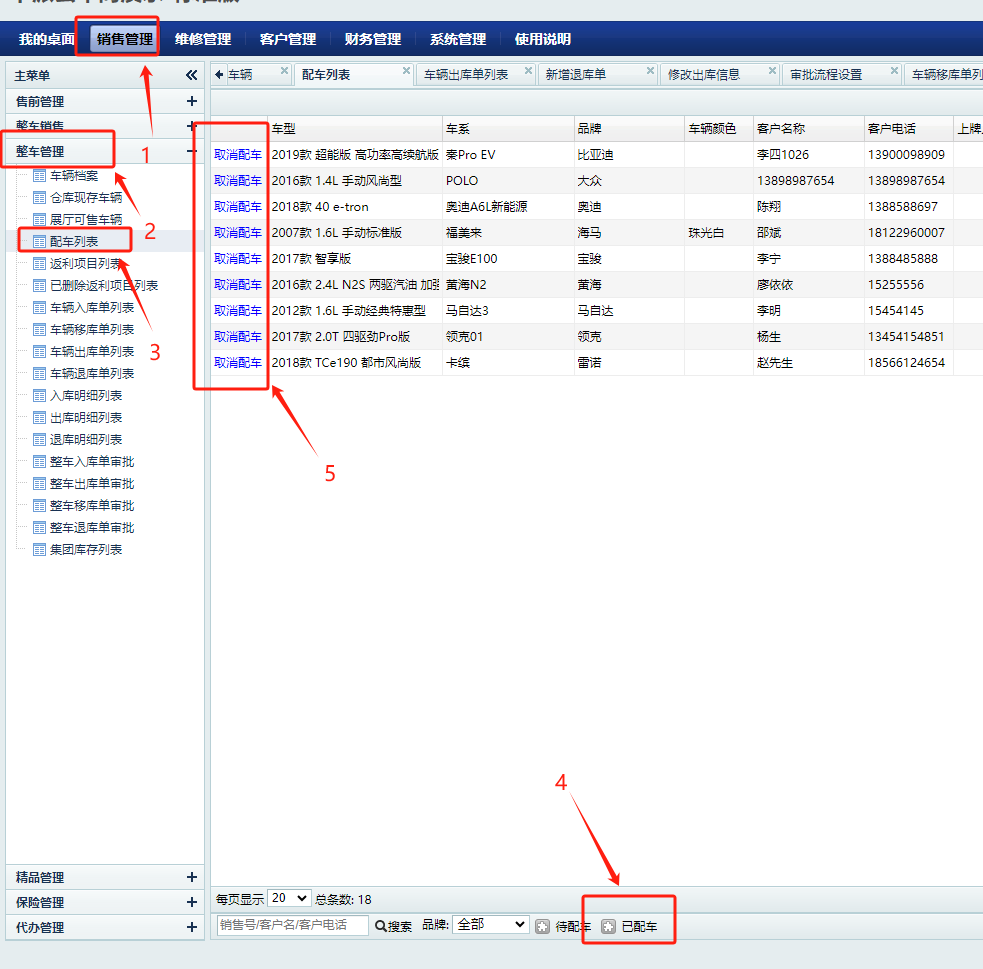 2 | 给销售单【配车】、车辆出库、车辆退货 |