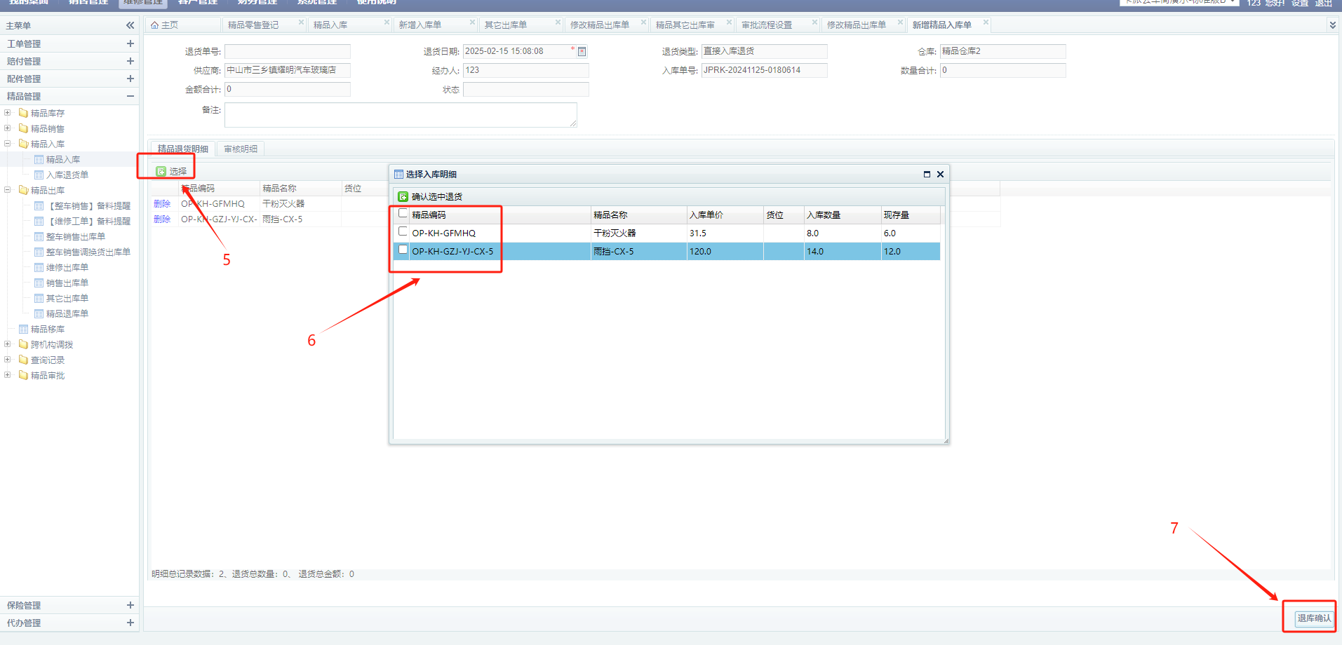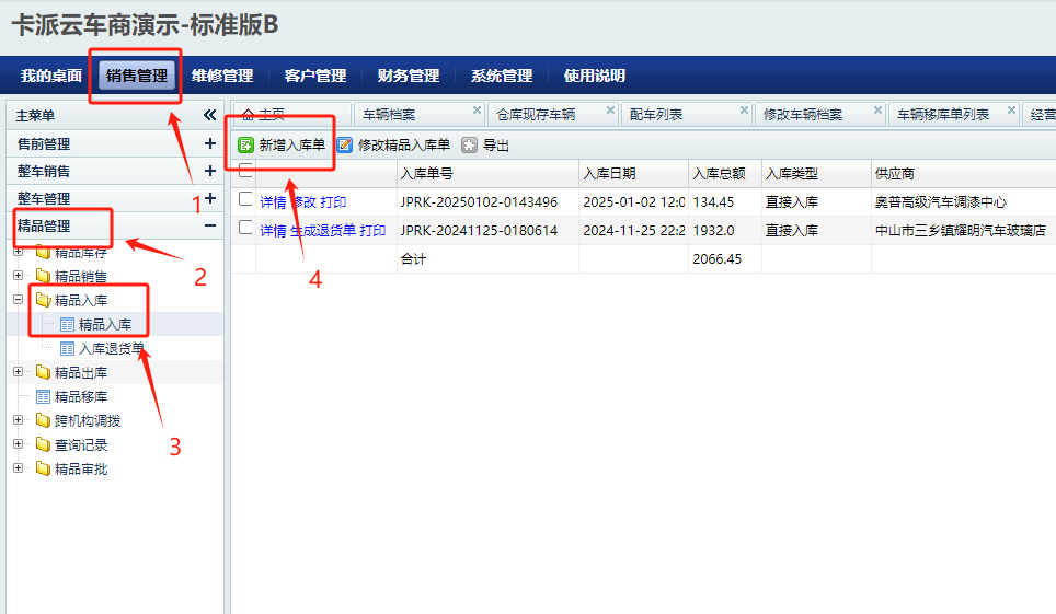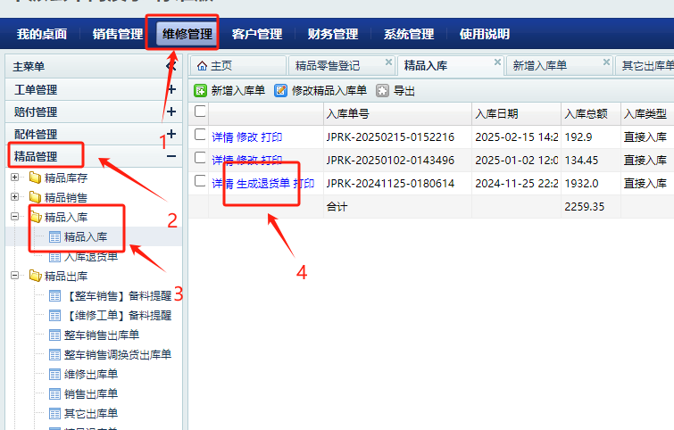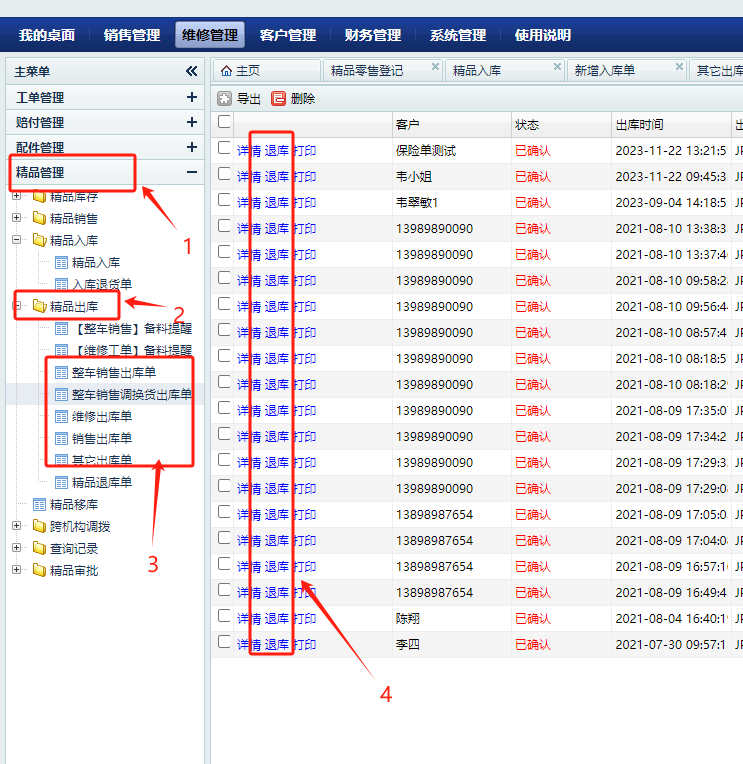 1 | 精品入库后怎么退货、精品出库后怎么退库、怎样查看整车销售未领的精品、怎样查看精品库存 |