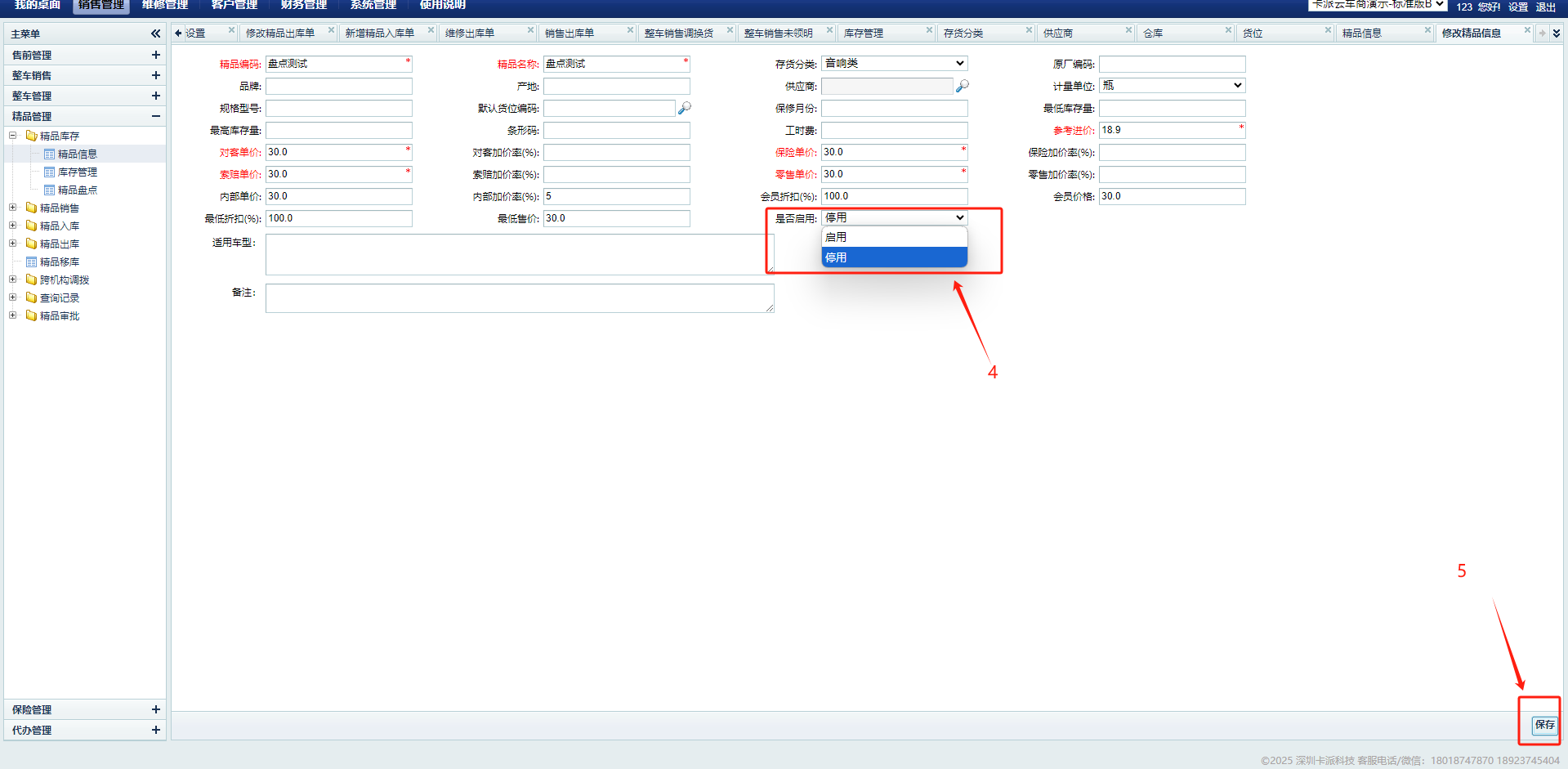 ● 已经不销售的精品如何停用,让销售人员不再看到这些精品?