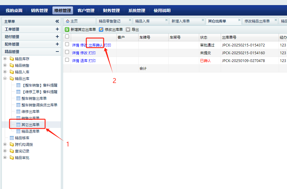 2 | 整车销售单精品领料出库、整车销售单精品调换货、维修单精品领料出库、精品其它出库流程 |