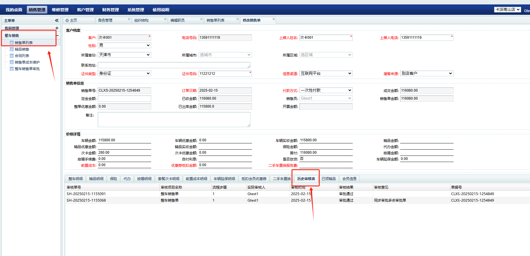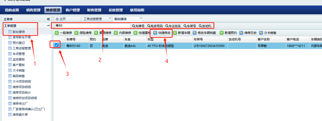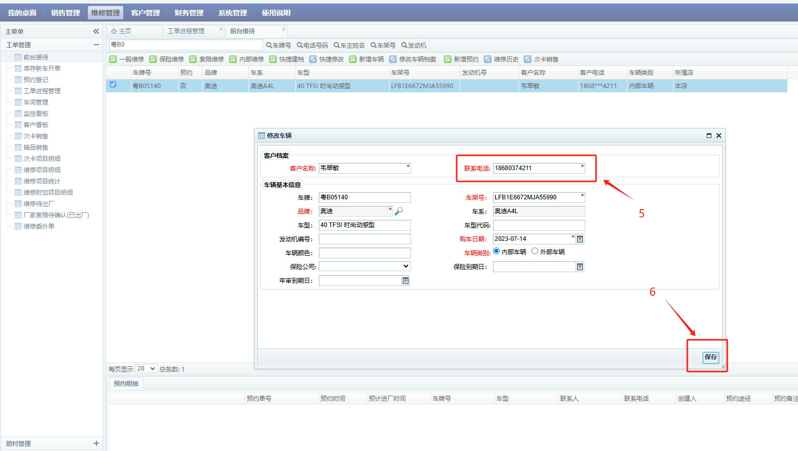 2、修改保有客户信息(与销售单交车时的联系电话一致)
