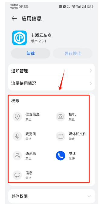 路径2:设置→下拉找到卡派云车商图标→位置、照片、麦克风、相机