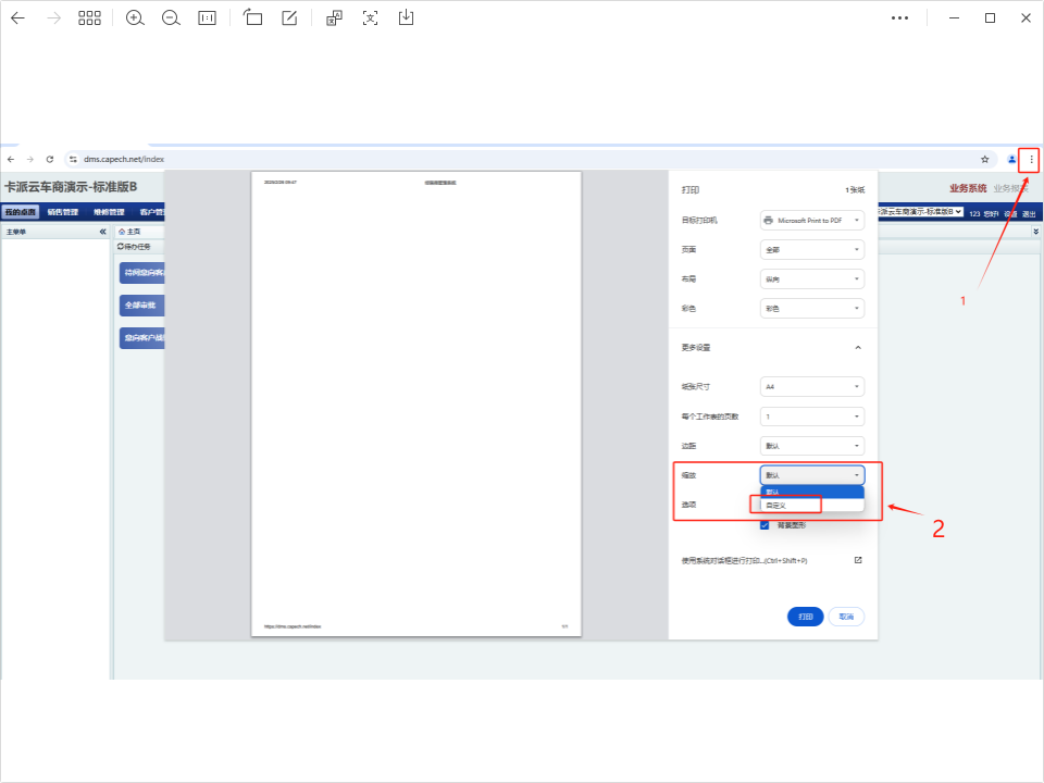 ▲在浏览器的设置中找到打印机的设置,不同的浏览器都可以在设置中可以找到打印机的设置选项。