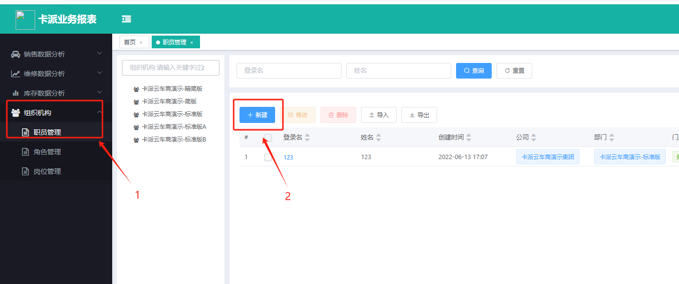 是因为管理员没有给您配置好相关的权限,请找贵司的管理员在DMS系统上系统设置→公司设置→组织结构,找到该员工账号里,给该账号勾选“销售顾问”或“前台接待”的角色,才能看到【新增潜客】或【新增流量】两个按钮。