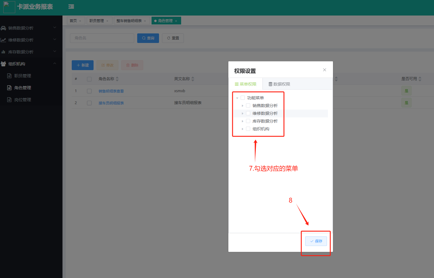 配置完成后,职员登录DMS系统,就可以查看业务报表