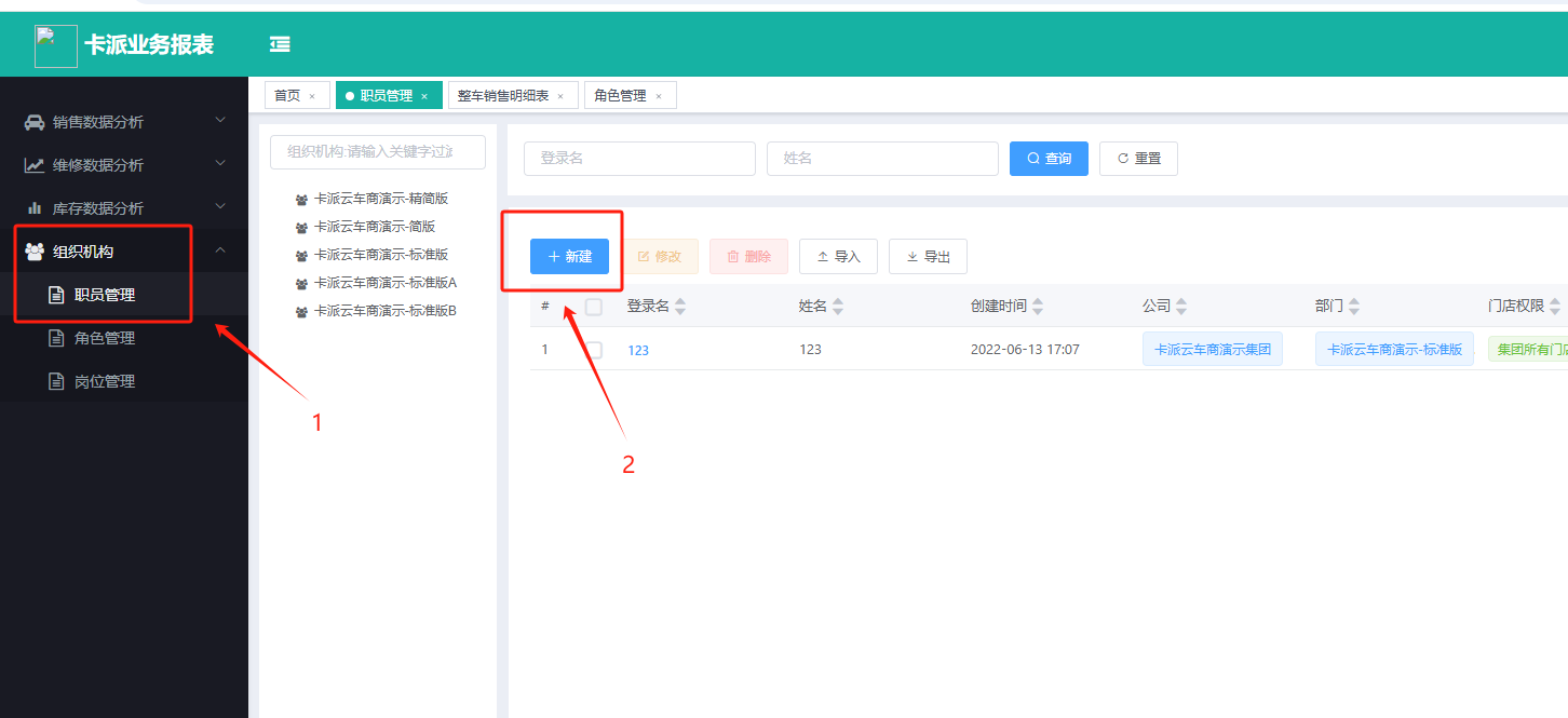 1、此处创建的账号要与DMS中此职员的手机号一致;