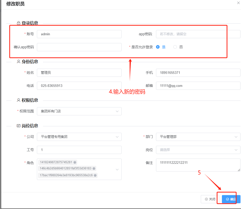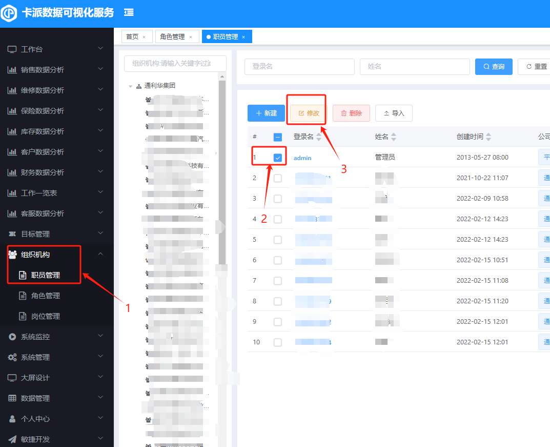 3、数据可视化APP的登录密码需要管理员在职员信息中单独设置,如下图: