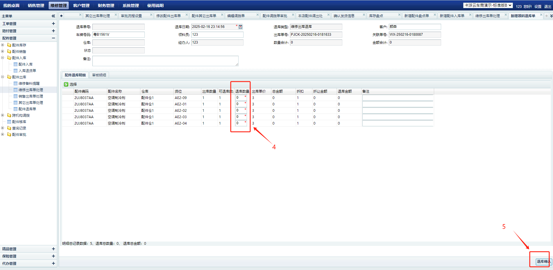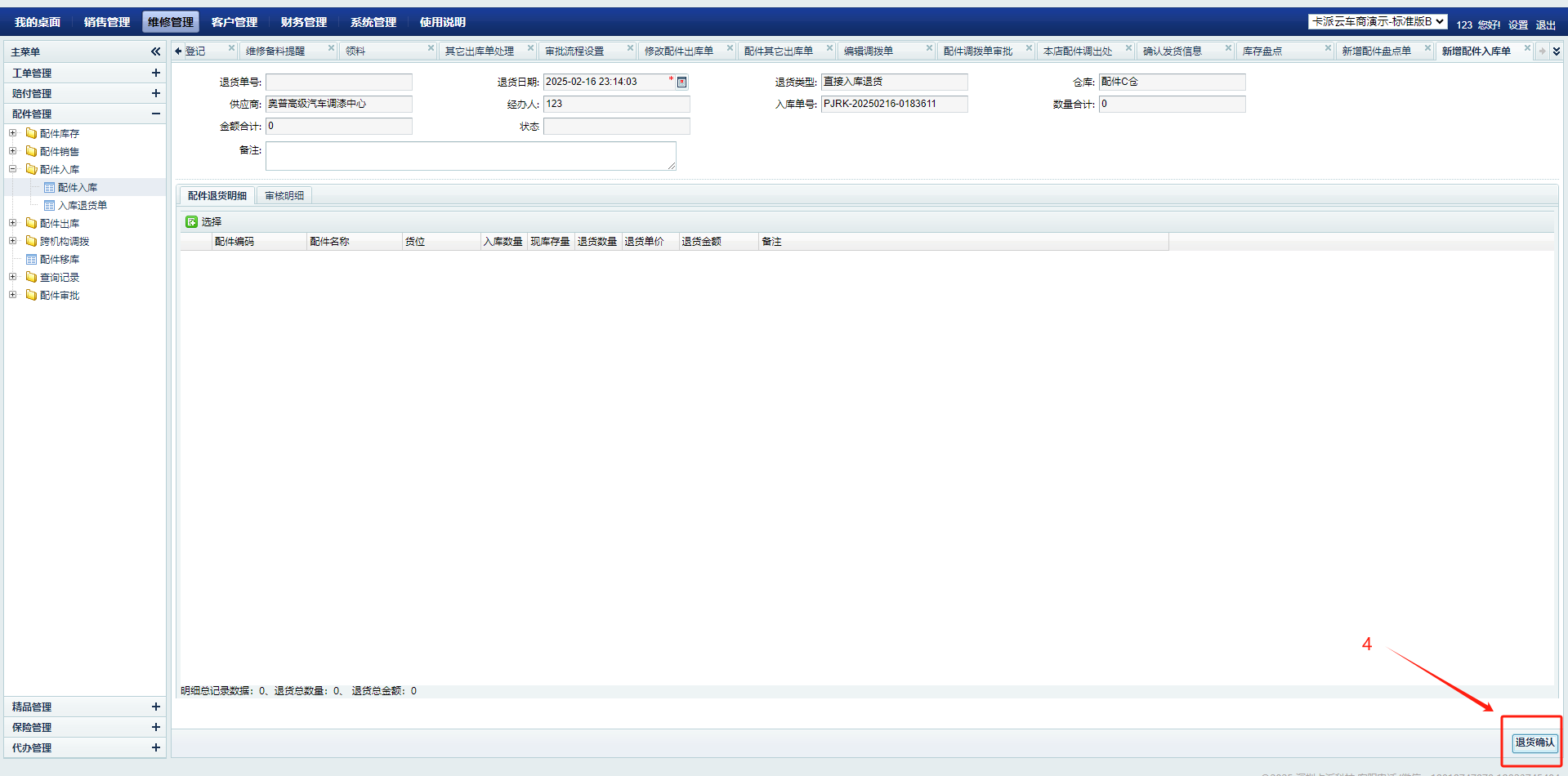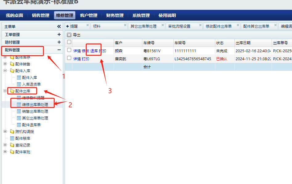 ● 已经两清出厂维修工单如何操作配件退库重新出?