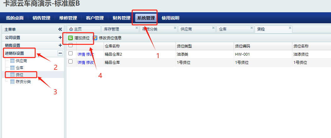 2 | 存货分类在哪里添加、供应商在哪里添加、仓库在哪里添加、货位在哪里添加 |