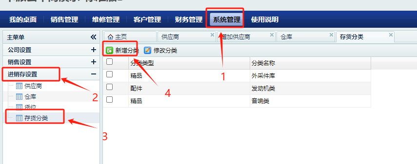 1 | 新增供应商、新增仓库、设置存货分类、新增维修项目、设置维修班组、配置售后人员 |